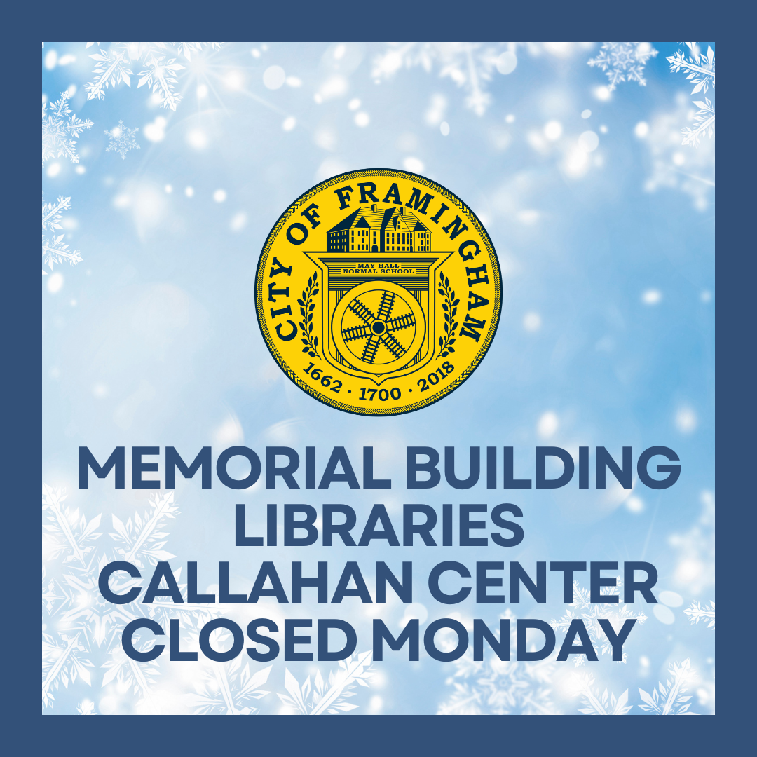 Framingham Municipal Offices, Libraries, and Callahan Center Closed Monday